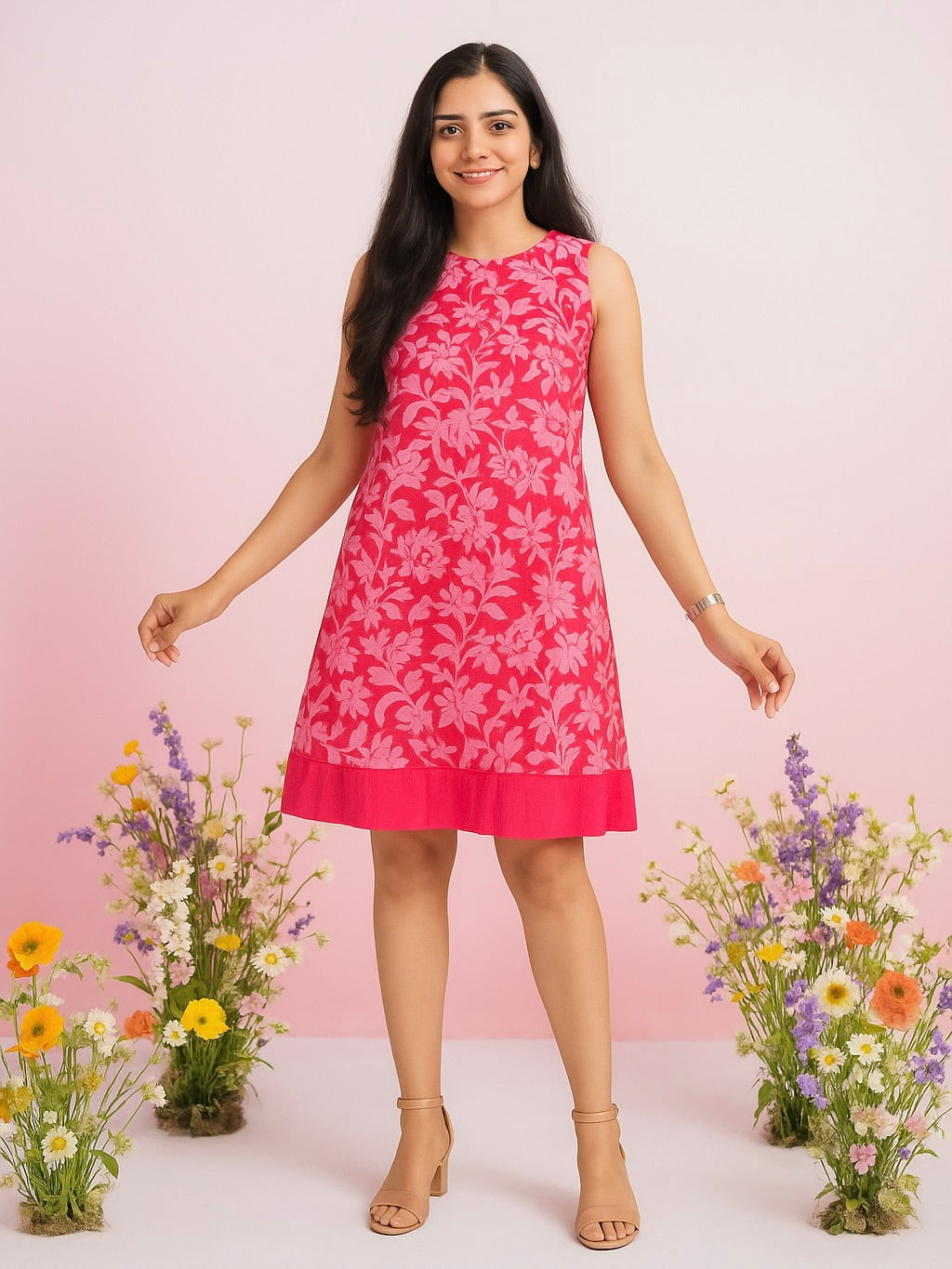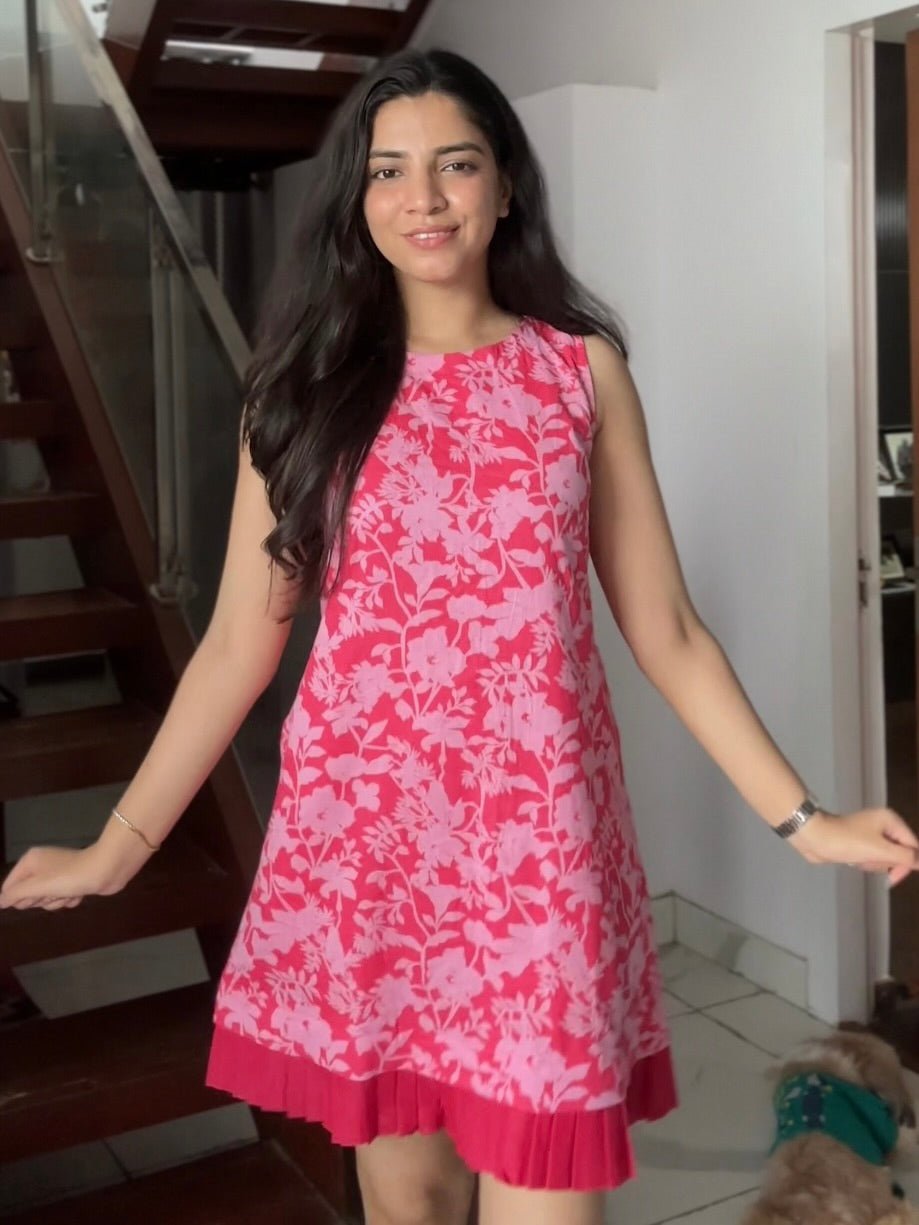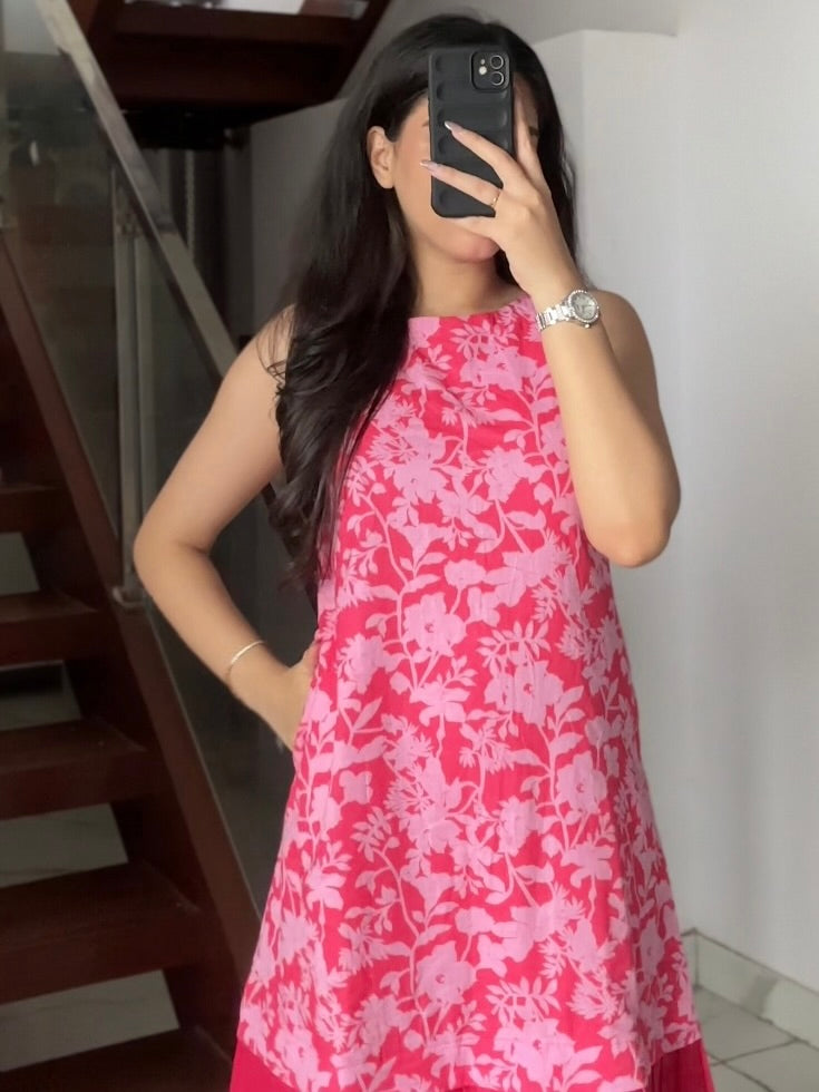 Step into effortless charm with our Floral Dark & Light Pink Sleeveless Dress, designed for days when comfort meets chic. Crafted from breathable cotton fabric with full lining, this short dress ensures a flattering fit while keeping you cool and comfortable.